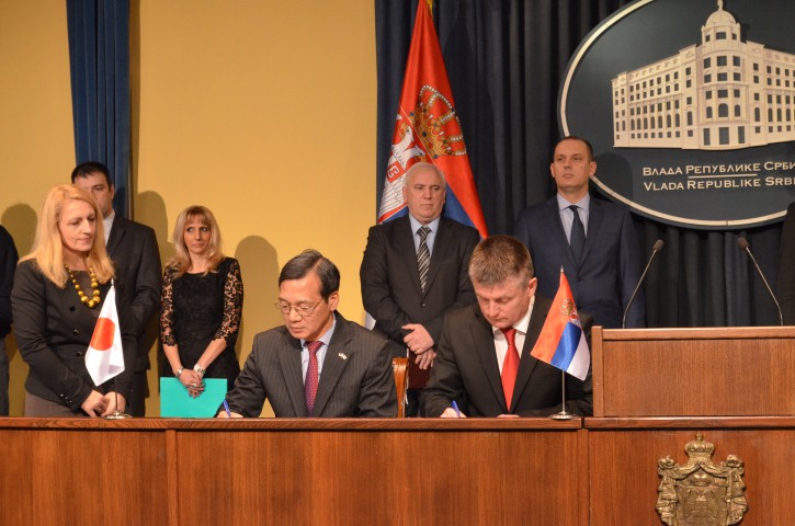 Ceremonija potpisivanja ugovora o donaciji Japana je održana u Pres Sali Vlade Republike Srbije 13. februara 2015. godine. Ambasador Japana u Republici Srbiji potpisao je 5 ugovora o donaciji: